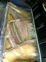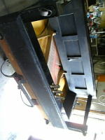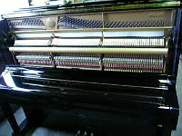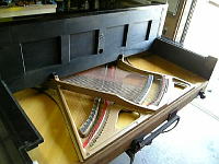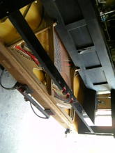 ピアノを起こします。 サービス塗装の済んだ妻土台 ペダルもピカピカ