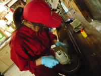 ハンマーを削って形を整え良い音を取り戻します。 鍵盤蓋磨き。