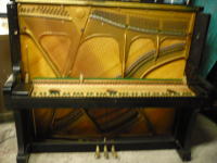 ハンマーは綺麗なので削って整形。 アクションが外れた状態。 響板裏の掃除です。