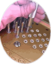 ブッシュの穴あけです。 チューニングピン打ち込み開始。