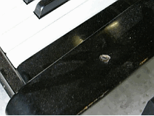 腕木の外も内も真っ白けですね。 鍵盤を外します。 バランスピン錆 鍵盤下埃だらけ