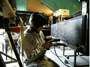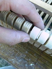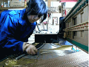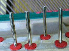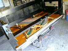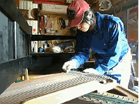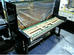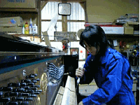 弦の錆取りに入ります。 サンドラバーで一本ずつ磨きます。非常に根気がいります。